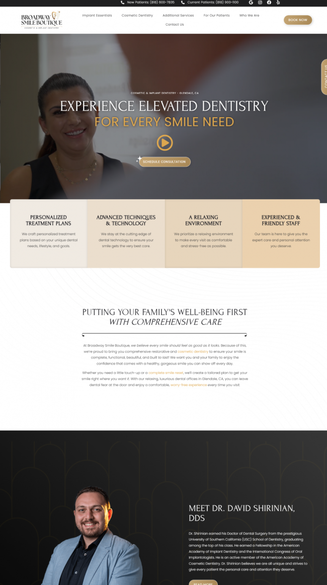 Broadway Smile Boutique in Glendale, CA launches a new website to enhance patient experience, offering intuitive navigation, state-of-the-art dental service information, and easy appointment scheduling. Emphasizing personalized care, the site reflects the practice's commitment to a concierge-level service.