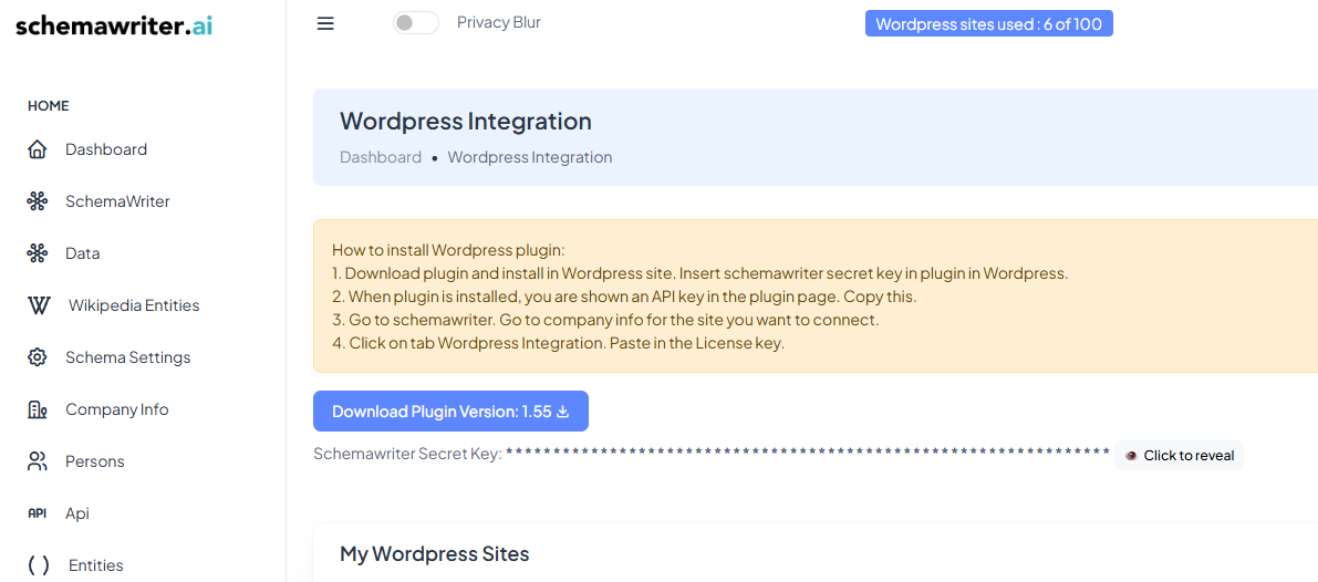 The plugin features straightforward API key integration, allowing users to connect their schemawriter.ai account to Wordpress sites securely and deploy advanced schema markup to specific pages with just a few clicks. Notably, the schema remains on users' sites even after subscription cancellation, ensuring they retain the SEO and AI visibility value they have already created.